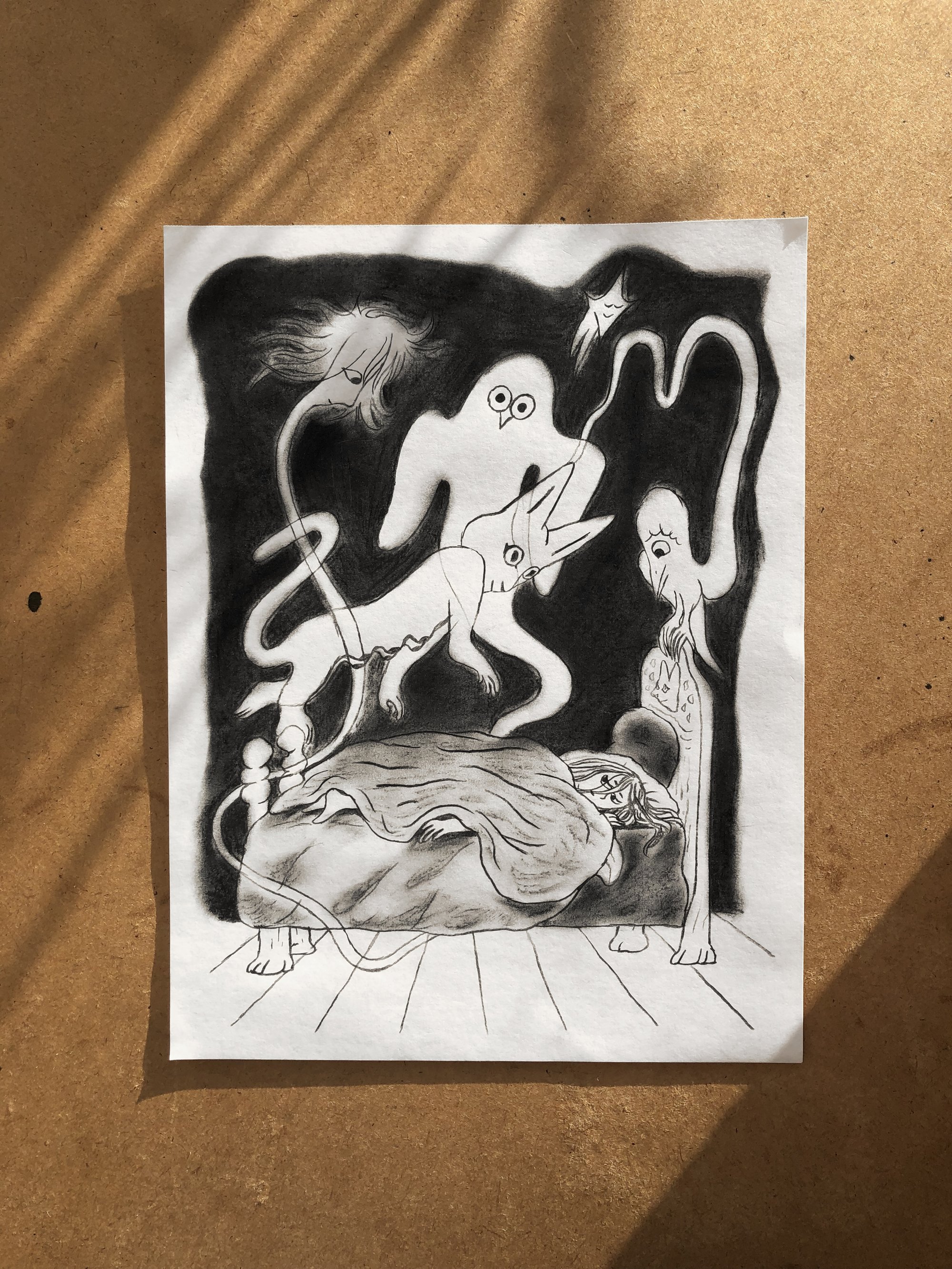 Dessin au crayon et fusain issu de ma série pour le challenge Peachtober de 2025.