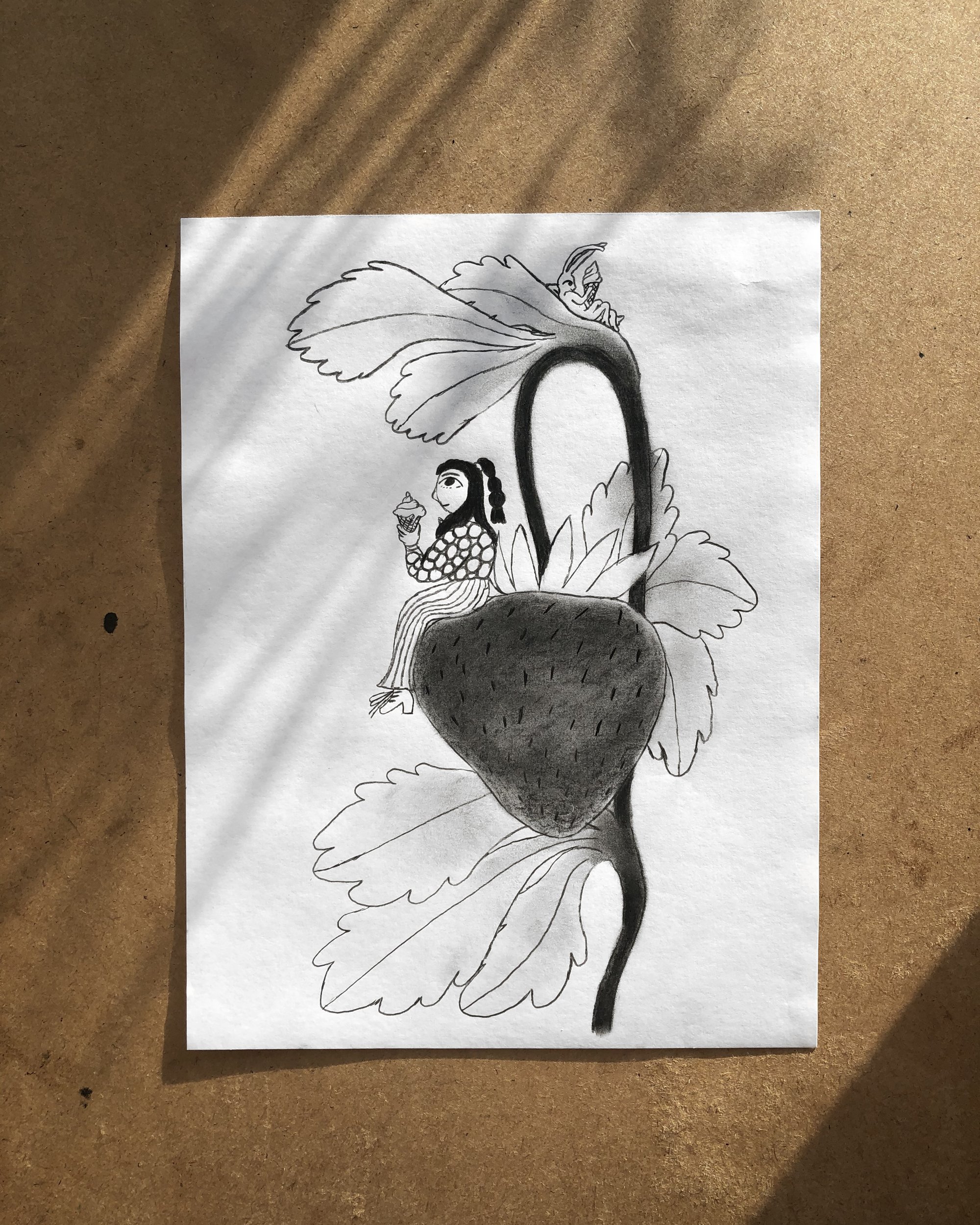 Dessin au crayon et fusain issu de ma série pour le challenge Peachtober de 2025.